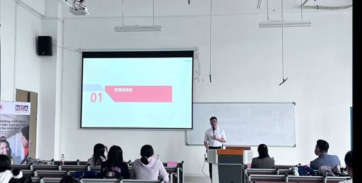 宣讲会第三项议程由ACCA广州办公室高级业务发展主任吴敏涵女士向各位同学详细讲述了ACCA创办历史,ACCA合作企业,ACCA未来的发展和机会,职场竞争中的优势等内容。