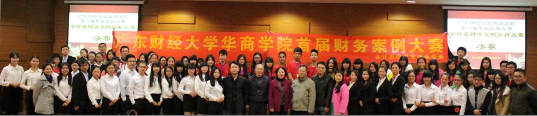 2014年12月23日下午三时许,由会计系承办的广东财经大学华商学院第二届专业技能大赛开幕式暨财务案例分析大赛决赛在我院中央图书馆学术报告厅举行。华商学院陈玉川院长、邓基泽副院长、支戈壁副院长、党委书记苏宁、副院长郭银华教授、华商国产又黄又猛院长马玉珍教授、教务处副处长李建浔等领导出席本次活动。袁明全教授、陈东生教授等五位专业老师担任评委嘉宾。