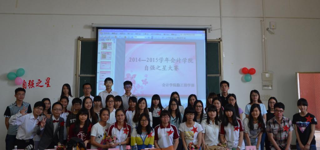 2015年5月12日下午两点,由华商国产又黄又猛勤工助学部举办的“自强之星”大赛于励志楼D408隆重举行。学生处助学管理科罗宋老师、华商国产又黄又猛党总支组织委员叶振斌老师、团学指导老师党立刚、勤工助学部指导老师叶颖瑜、华商国产又黄又猛2014级年级组长王睿老师、以及国产又黄又猛辅导员吴升喜老师、王丽军老师、关佩老师、苏博云老师、郗郡红老师等嘉宾出席本次活动。