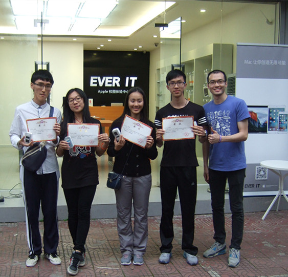 经过激烈角逐比赛后,颁奖仪式于16点30分在苹果体验店隆重举行。Apple校园体验中心的王越山店长、郑俊熹经理等嘉宾分别为参赛者颁奖。