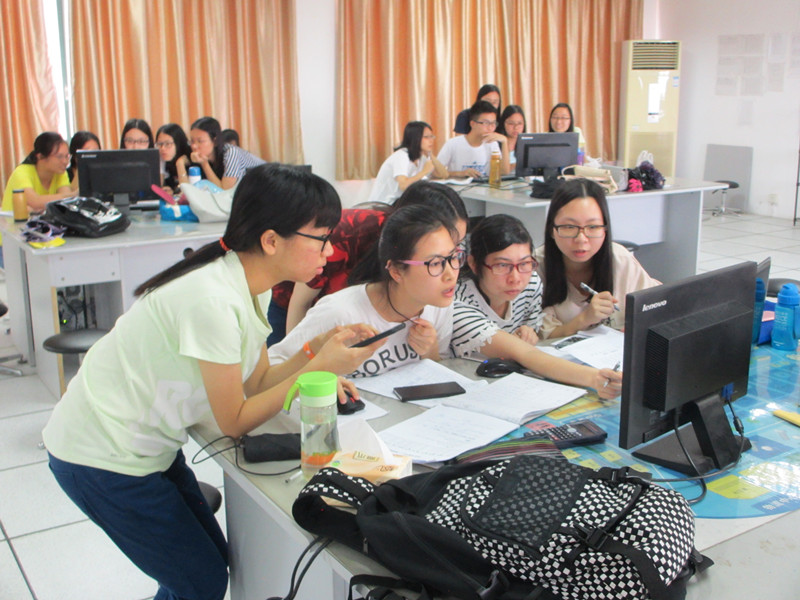 比赛伊始,18组参赛队伍展开了紧张而有趣的角逐,各组组员们分工合作,一边专心致志地计算分析,一边激烈而有效率地讨论出策略。大家时而蹙眉思考,时而熟练地操控着电脑。