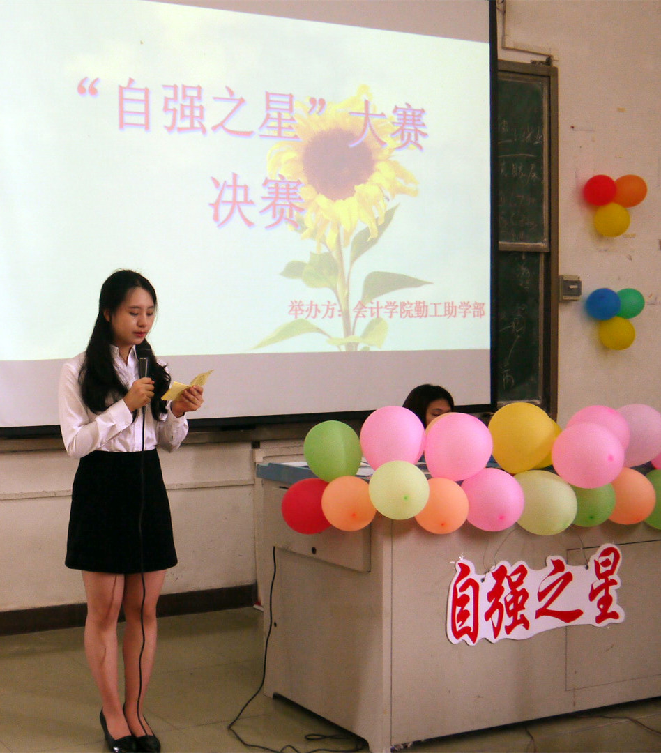 天行健,君子以自强不息;地势坤,君子以厚德载物。为引导我院广大学子树立正确的价值观,弘扬自立自强的精神,5月31日下午5点,国产又黄又猛在励志楼D208举行了第二届“自强之星”大赛决赛。学生处助学管理科李师,华商国产又黄又猛15级年级组长童蓉,国产又黄又猛团学指导老师苏博云,会计心康站指导老师刘泽,国产又黄又猛第三党支部书记袁善福,王丽军、蓝艳艳、袁艺株等辅导员出席了本次大赛。