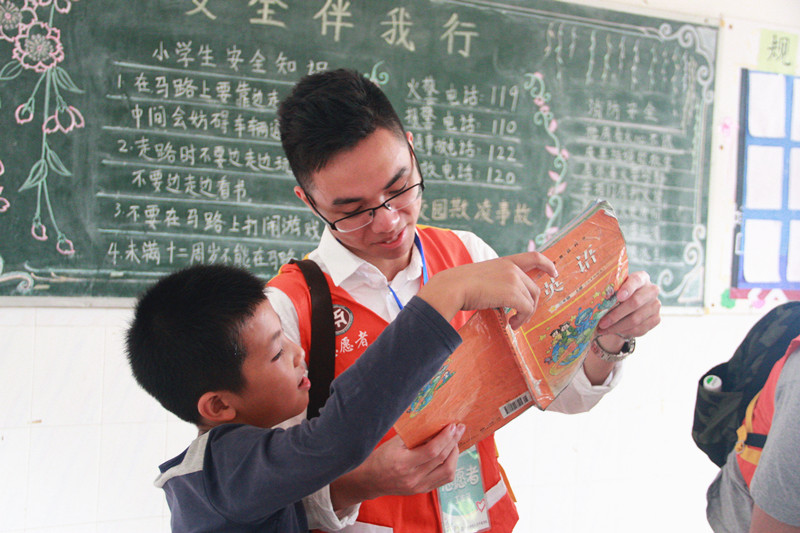 下午2点,志愿者们踏进了期待已久的校园,内心热情高涨。凉爽的秋风吹散了笼罩在大地的热气,欢声笑语充满了整个校园,孩子们活泼可爱的身影成为了校园的一道靓丽风景线。下午2点10分,爱心支教正式开始。志愿者分别到不同的教室,而原本乱哄哄的教室在志愿者的组织下变得井井有序。他们通过故事、游戏、奖励、视频等方式激发小朋友们的学习兴趣,将中外传统节日习俗知识传授给小朋友。原本追逐打闹的小朋友也投入到小老师的精彩教学活动中。课间活动时,志愿者和小朋友打成一片,玩乒乓球、跳绳、嬉戏打闹……你中有我,我中有你,志愿者将爱心渗透到每一个活动中。