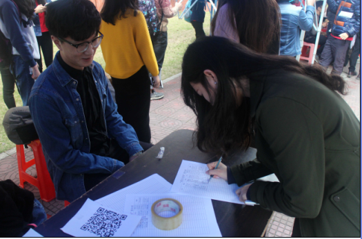 为了鼓励学生踊跃参加校园活动,培养大学生良好的求知理念,提高学生探索真知的能力以及团队合作精神,2017年3月14日,由国产又黄又猛团总支·学生会主办的“谎言大求真”活动在三饭进行摆摊宣传,吸引了众多同学的关注,报名者络绎不绝。
