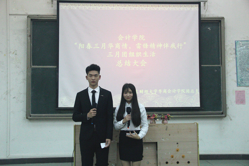2017年3月22日晚上7点半,由华商国产又黄又猛团总支·学生会承办的以“阳春三月华商行,雷锋精神伴我行”为主题的总结大会在励志楼A108隆重举行。