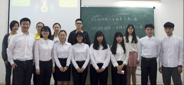 3月30日19点,国产又黄又猛(正方)与信息工程系(反方)辩论队在厚德楼C413进行了一场“金钱是不是万恶之源”的交流辩论赛。