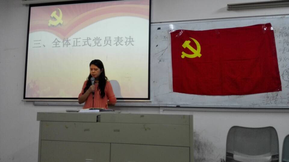 接着,在李明珍同志在此将对他们提出通表。各发展对象(潘嘉怡,罗晓亮,徐樱姿等15名同志)在台上真诚、严谨地向党组织表明了持之以恒为人民服务的决心和积极向党组织靠拢态度。在各发展对象有序提出申请后,党支部党员同志的表决将会议推入高潮,那是一个个深思熟虑过后的表决,是对过去一年的时间努力的肯定。