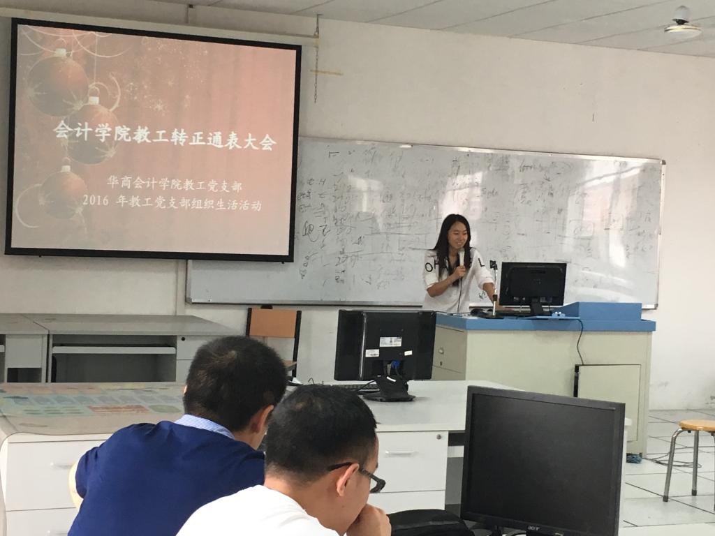 2016年4月26日下午,华商国产又黄又猛教工党支部在厚德楼A507教室隆重举行了该年度预备党员转正及通表大会,出席本次大会的有华商国产又黄又猛教工党支部书记王敏和全体教工党员。