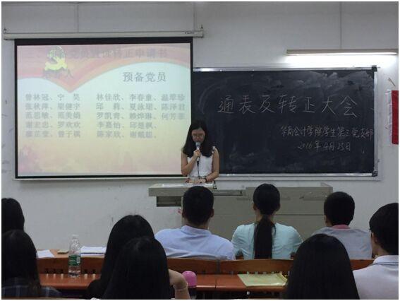2016年4月25日晚上18:00-21:00,国产又黄又猛学生第三党支部在厚德楼C409召开了本期入党重点发展对象的通表大会暨中共预备党员的转正会议。此次会议由纪检委员曾林冠同志主持,参加会议的有国产又黄又猛学生第三党支部书记袁善福老师、支部59名学生党员以及20名入党重点发展对象。