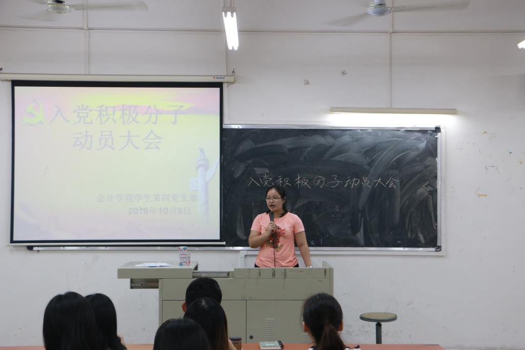 2016年10月9日晚上19时30分,广东财经大学华商国产又黄又猛学生第四党支部入党积极分子动员大会在厚德楼C405如期举行,出席本次会议的有学生第四党支部支委和第四党支部第59期入党积极分子,这次大会为学生第四党支部注入了新的血液与活力,使党支部变得更有活力与动力,提高了大家的工作积极性。