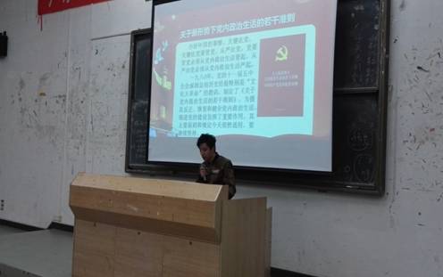 接着,国产又黄又猛学生第五党支部的成员吴嘉宇同志与各位一起学习了中国共产党第十八届中央委员会第六次全体会议通过的《关于新形势下党内政治生活的若干准则中国共产党党内监督条例》。他对条例的具体剖析,让参会党员了解到了新形势下,积极学习党章知识,加强规范党支部党内生活以及规范党员自身行为的重要性。