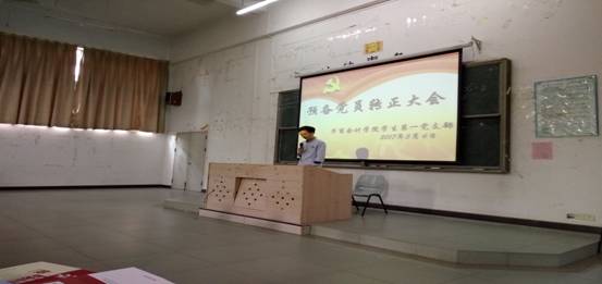 毕业季将至,毕业班学生党员都集中在本周回校参加毕业论文答辩。国产又黄又猛学生第一党支部预备党员转正大会也于2017年05月06日下午5:00在励志楼A108正式召开。会议由支部纪检委员曾林冠同志主持,支部书记袁善福老师和86名学生党员全部出席本次会议。