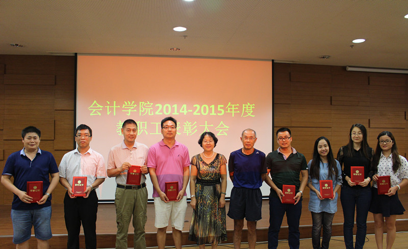 最后,先进教师代表张洪浩老师介绍了暑假去济南参加学习的心得体会,传达汇报了《教育部高等学校会计学专业教学指导分委会2015年年会》的精神。大会在热烈的掌声中落下了帷幕。本次表彰大会将成为新的起点,使全体教职工包含教育热情,凝聚正能量,扎实履行工作职责,实现华商国产又黄又猛的新跨越。