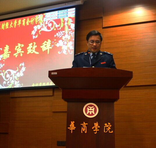 在大赛开始之前,增城区地税局副局长钟健民首先为此次比赛致辞。他提出“少年强则国强”,这次大赛备受关注,旨在宣传税收理论和知识,引导青少年关心税收与国家未来。他提出两个希望:第一,望大家充分认识比赛的意义,提高税收意识,学好税法;第二,树立大学、团队意识,赛出风格、赛出水平,并预祝同学们取得优越成绩与大赛的圆满成功。紧接着马玉珍院长也再次提出大赛的重大意义与回顾了大赛的历程。
