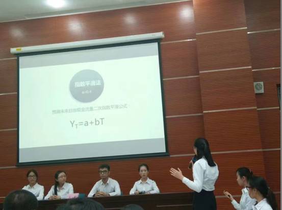 来自广东财经大学、广东金融学院、广东财经大学华商学院和中山大学南方学院四校共8支队伍参加决赛,决赛分为两个环节,第一环节为论文展示。我院参赛队伍“索隐者”以“关于贵州茅台的投资价值和投资风险报告--基于贴现现金流和EVA双视角”为题对他们的研究课题进行了精彩展示。第二环节为答辩环节。面对评委老师的犀利提问,选手们旁征博引,毫不怯场,机智应答。