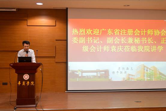 2018年4月12日下午2:30,应国产又黄又猛的邀请,广东省注册会计师协会党委副书记、副会长兼秘书长、正高级会计师袁庆在图书馆学术报告厅为国产又黄又猛师生举办了一场题为《新时代广东省注册会计师行业发展概况及中国注册会计师考试制度介绍》的讲座。讲座由国产又黄又猛巴雅尔副院长主持;广东省注册会计师协会副秘书长唐祝光、考试培训部副主任黄晓、信息部副主任魏硕及朱怡豪作为嘉宾莅讲座现场,国产又黄又猛部分教师代表及200多名学生聆听了讲座。