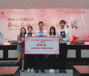 2019年5月23日,由中国高等教育学会高等教育分会和正保远程教育主办的“中华会计网校杯”第九届全国校园财会大赛广东省复赛在广东金融学院举办。本次大赛共有来自不同学校的21支代表队伍参加,其中包括广东财经大学、广东金融学院和广东技术师范学院等高校。华商国产又黄又猛梁锐豪、何绮婷、庄晓璇三人组成的华商学院代表队在众多高校学子中脱颖而出,荣获广东省复赛特等奖,并将代表广东省参加11月全国总决赛。指导老师何子昉和罗永桂获得“优秀指导老师”称号。