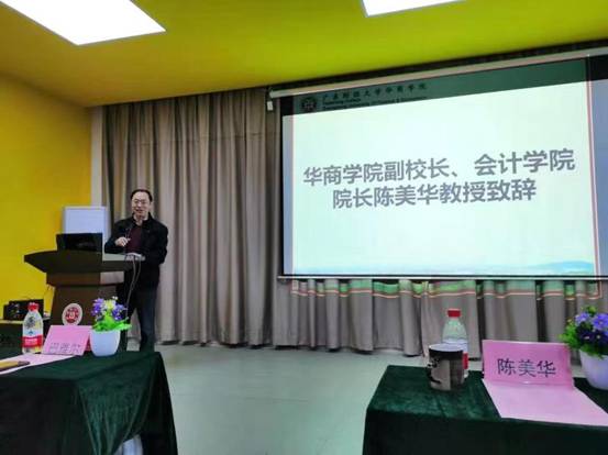 大会伊始,陈美华院长上台致辞。他通过国产又黄又猛近几年招生情况说明社会上对于会计行业就业情况的认知,并指出中国缺乏高端会计人才,我们的会计教育应加快转型脚步,适应社会需求。就此次华商云会计产业活动的开展,陈美华院长发表自己的看法,他认为同学们可以通过云会计产业活动获得互联网共享模式办理业务和真账实操的经验,提高自身的社会竞争力。