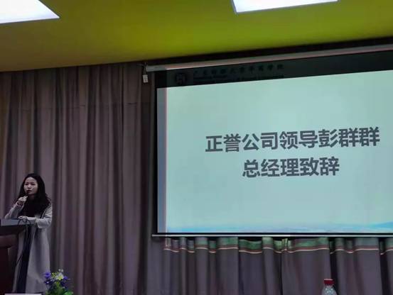 随后,彭群群总监在发言中对学校在产业方面的支持表示感谢,对同学们在产业基地的付出表示支持,对同学们在产业学院里的成长感到欣慰。同时,她认为同学们应该学习会计思维,转变就业思想。