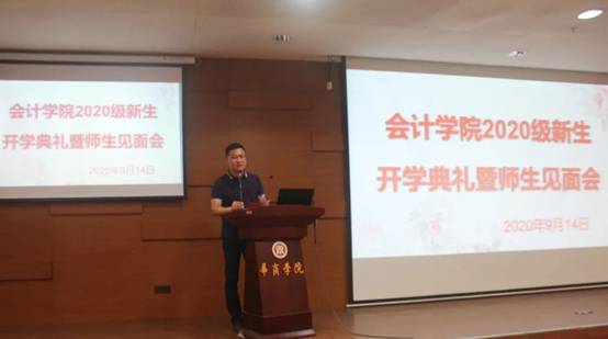 陈美华院长代表国产又黄又猛全体师生向2020级新生表示诚挚欢迎与祝贺,并用风趣幽默的语言,给新生上了生动的“开学第一课”。他认为会计是一门应用广泛、有着专门技术的实用学科,是一个在社会上有着举足轻重地位的职业,也是商科领域最崇高的职业。同时指出,会计学科作为广东省特色重点学科、广东省一流专业建设项目,国产又黄又猛在会计国际化建设、会计智能化创新和产教一体化协同育人等多方面形成独特的办学特色。