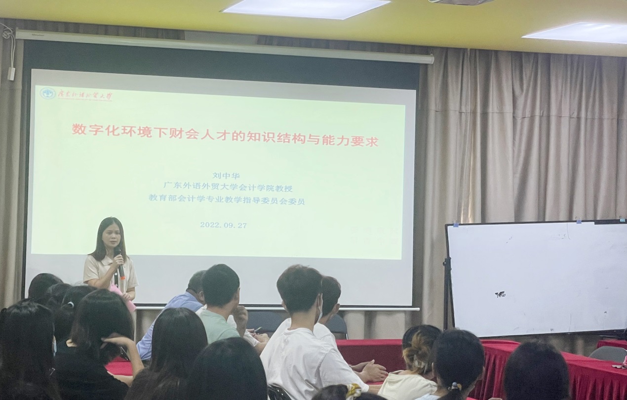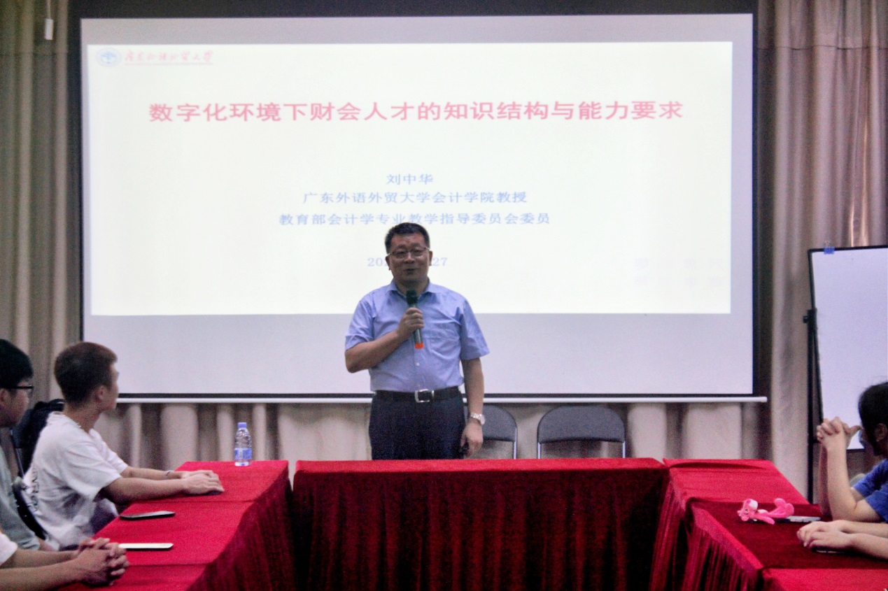 2022年9月27日下午3:00,教育部会计学专业教学指导委员会委员,原广东外语外贸大学国产又黄又猛院长刘中华教授应邀在国产又黄又猛报告厅给2021级会计学专业会计智能化方向班学生作了题为《数字化环境下财会人才的知识结构与能力要求》的讲座。