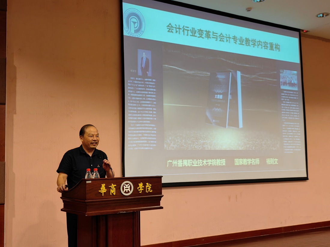 陈美华副校长向国家“万人计划”名师、广州番禺职业技术学院财经学院院长杨则文教授颁发了广州华商学院客座教授聘书。聘任仪式后,杨则文教授为我院师生作了题为“会计行业变革与会计专业教学内容重构”的学术报告。