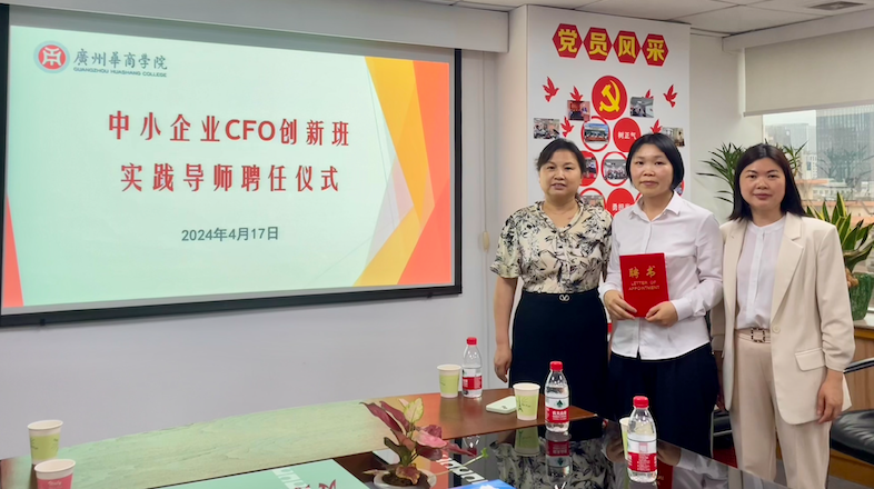 接着,姚老师分享了财务管理专业中小企业CFO创新班的建设情况及取得成效。中小企业CFO特色班以“终身学习、善于沟通、领导合作、适应环境”为基本理念,实行“学业导师+实践导师”双导师制,采用多元化教学方式和校企合作协同育人模式,培养更多能够担任中小企业领导人或财务负责人的会计人才。随后,双方就广州华商学院中小企业CFO创新班实践导师事宜进一步达成合作,举行了中小企业CFO创新班实践导师聘任仪式,广东华政新东山税务师事务所黄婉清、何思莹、杨璨、黄俏飞四人被正式受聘为实践导师,他们将从实战指导和职业发展两方面为学生提供指导。