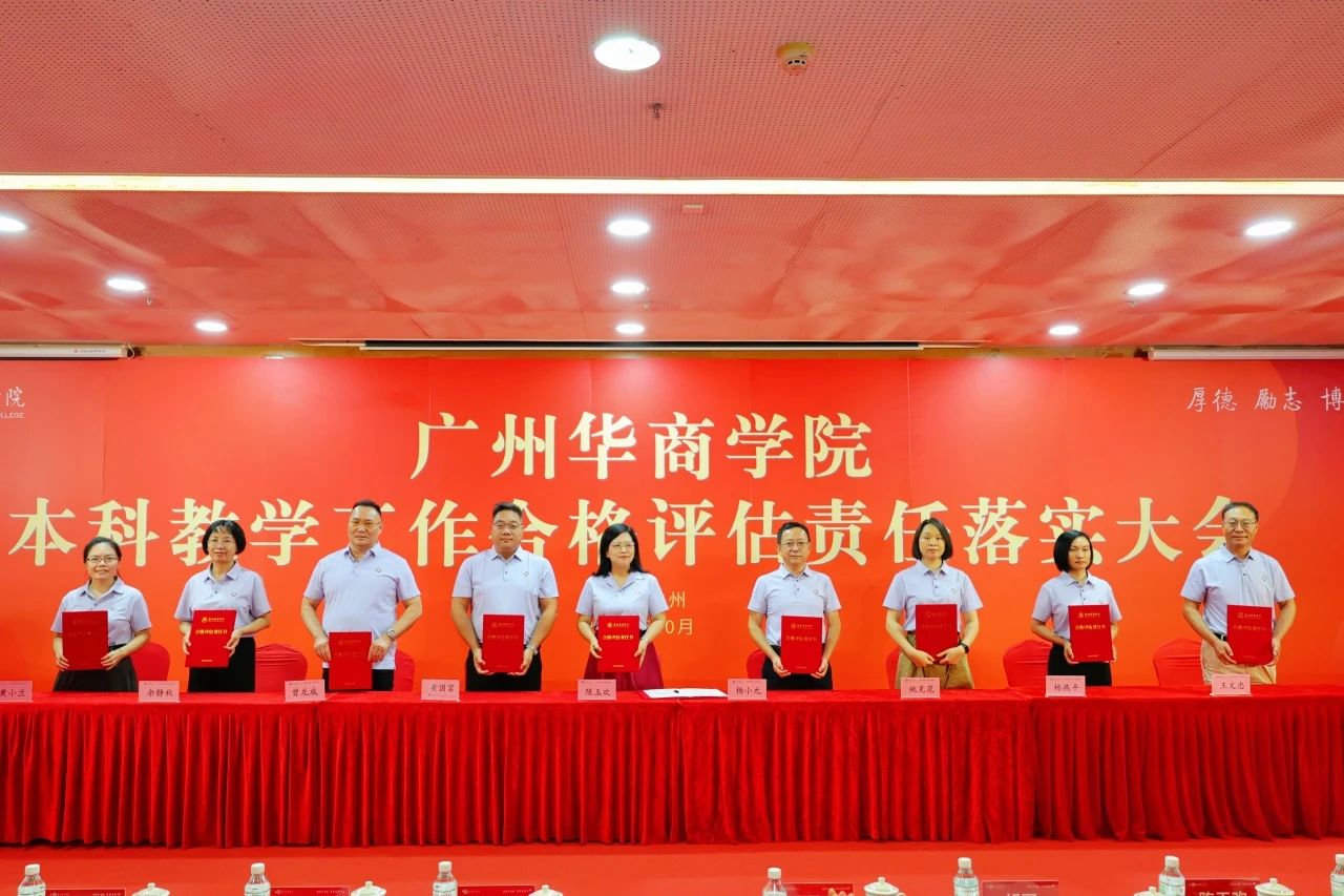 为进一步细化合格评估的标准和要求,有序推进我校本科教学工作合格评估,落实大会上,廖榕就董事长与全体校领导、党委书记陈玉欢与各二级学院及职能部门负责人分别签署本科教学工作合格评估责任书。全体教职员工表示将以满腔的热情和高度的责任心投身到迎评促建工作中,以最佳状态、最优成绩打赢本科教学工作合格评估攻坚战。