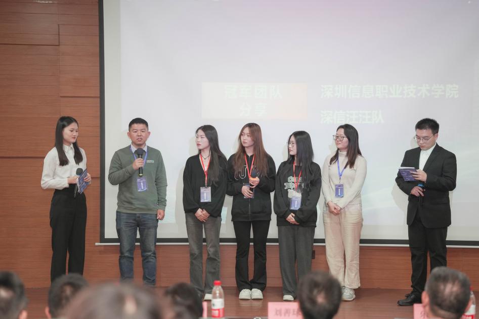 颁奖典礼结束后,邀请了此次大赛的第一名队伍(深圳信息职业技术学院)上台分享比赛的经验。最后金蝶精一信息科技服务有限公司执行副总裁乐志军先生进行比赛总结。