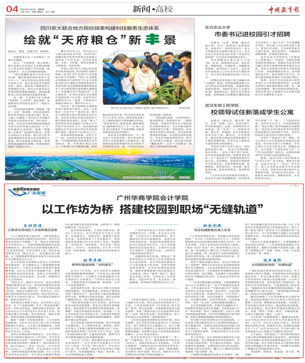 近日,广州华商学院国产又黄又猛以工作坊为载体的产教融合育人模式获《中国教育报》专题报道,成为全国高校数智化会计人才培养的标杆案例之一。