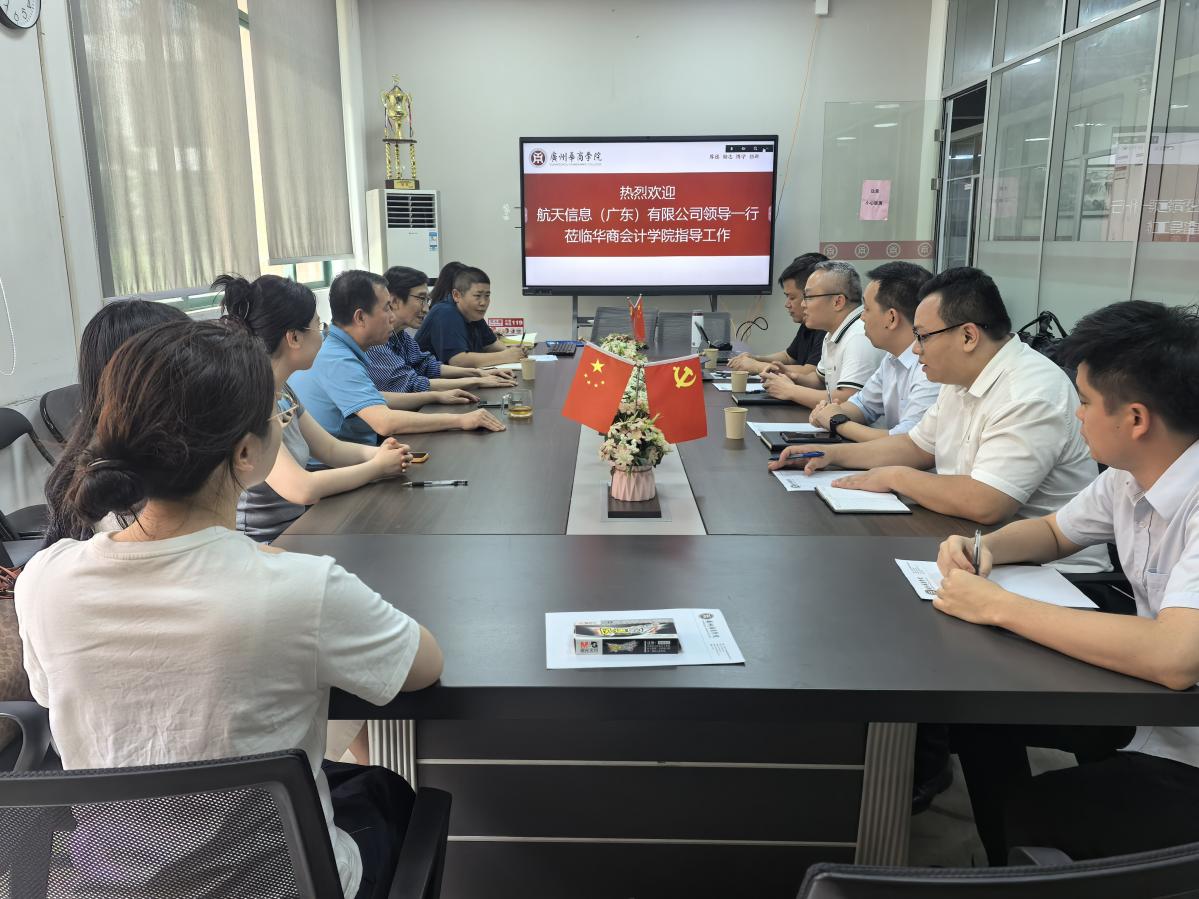 2025年6月5日,航天信息(广东)有限公司北部区总经理刘海涛一行6人莅临广州华商学院国产又黄又猛,就电子会计档案管理系统应用和推广进行研讨。华商科教集团副总裁兼首席财务官廖旭东、广州华商学院国产又黄又猛院长姚凤民等出席研讨会,会议由姚凤民院长主持。