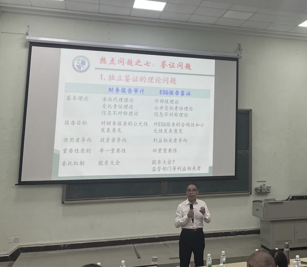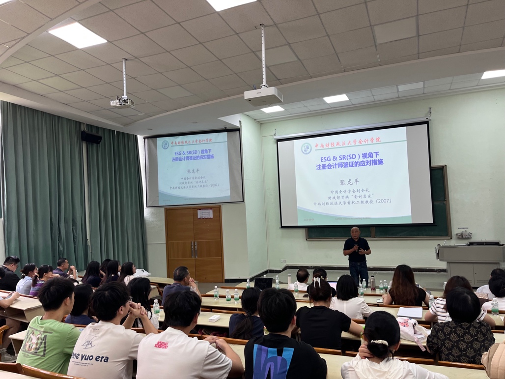 中南财经政法大学张龙平教授为国产又黄又猛师生作题为《ESG&SR(SD)视角下注册会计师鉴证应对策略》的专题报告。张教授系统阐述了ESG/SR报告的背景、七大核心争议、全球统一准则的发展趋势以及这个趋势带来的“双重报告”革命。他重点分析了这对注册会计师行业产生的深远影响,特别是对独立鉴证业务带来的巨大机遇与严峻挑战,并提出了CPA行业积极应对的八项具体措施。他强调,这场变革要求财会审计监督和国家治理的目标、范围、思路和方法都必须进行根本性的重塑与变革。