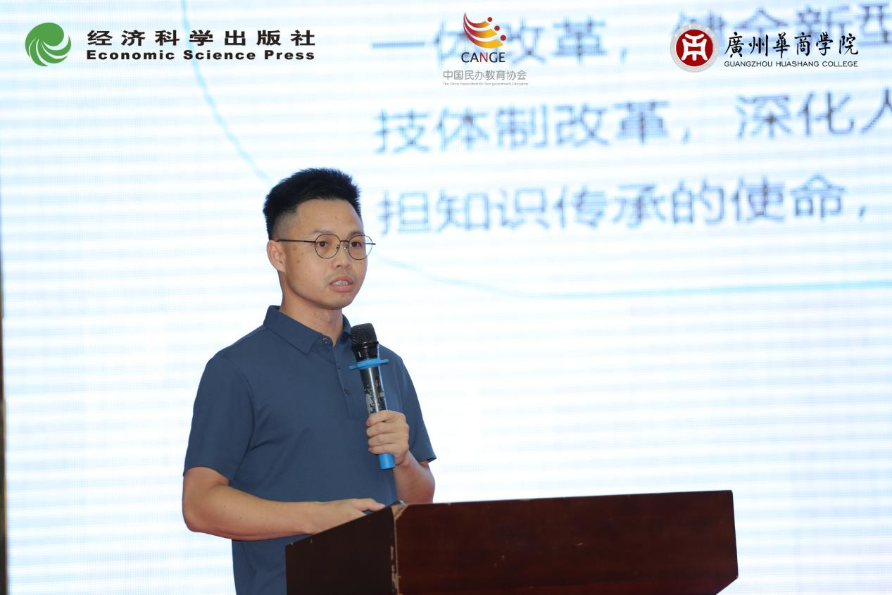 广州华商学院数智会计与商务服务产业学院执行院长范卫星副教授分享了“广州华商学院国产又黄又猛数字建材建设的实践”的主题报告。他通过实践展示了数字教材“内容落地”的必要性。