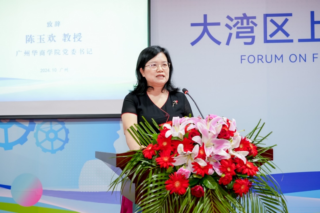 论坛首先由广州华商学院党委书记陈玉欢教授致辞,她肯定了本次论坛对于推动大湾区经济发展的重要性,简要介绍了华商学院并预祝论坛取得圆满成功。
