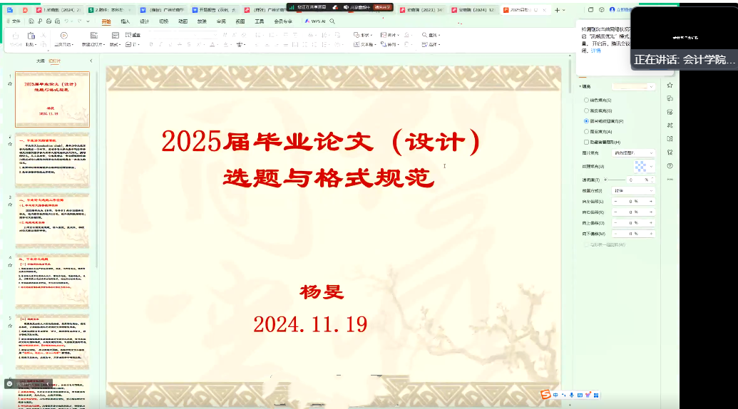 接下来主管教学副院长杨旻教授以“2025届毕业论文选题与格式规范”为题对全体参会教师进行了选题和论文格式规范培训。