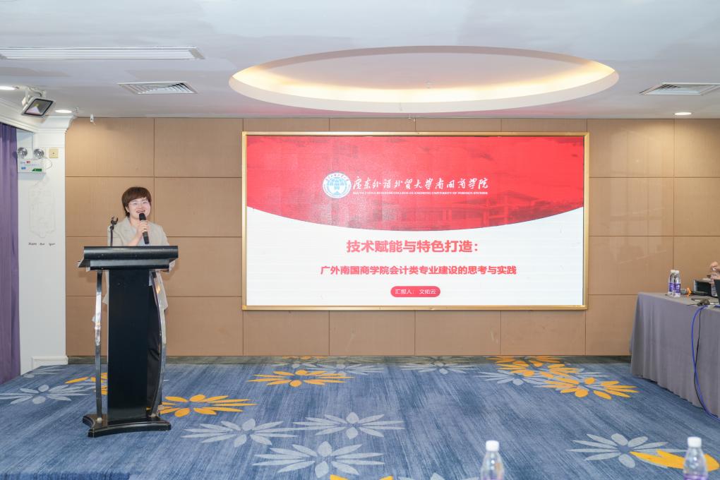 广东外语外贸大学南国商学院文佑云教授分享民办高校“智能财务+外语”交叉培养路径,通过校企共建实训基地、开设ACCA国际认证班等举措,打造差异化人才培养特色。