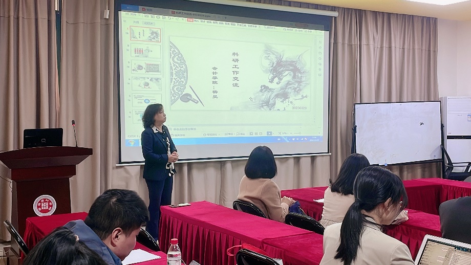 接着,由张含笑老师进行经验分享交流。张含笑老师作为会计系新秀,小荷已露尖尖角,在科研上已有自己的见解。她主要从论文研究方向、文献阅读、论文撰写、项目申报四方面进行了详细的分享。张含笑老师无保留地从自己在科研之路是如何摸索研究方向、如何用便利的知网资源快速地搜索到有用的文献、如何进行文献阅读、如何构造一篇论文的写作顺序和框架结构等方面娓娓道来。最后呼吁年轻教师要敢于尝试项目申报、善于使用图表分析、不断锻炼写作表达能力。