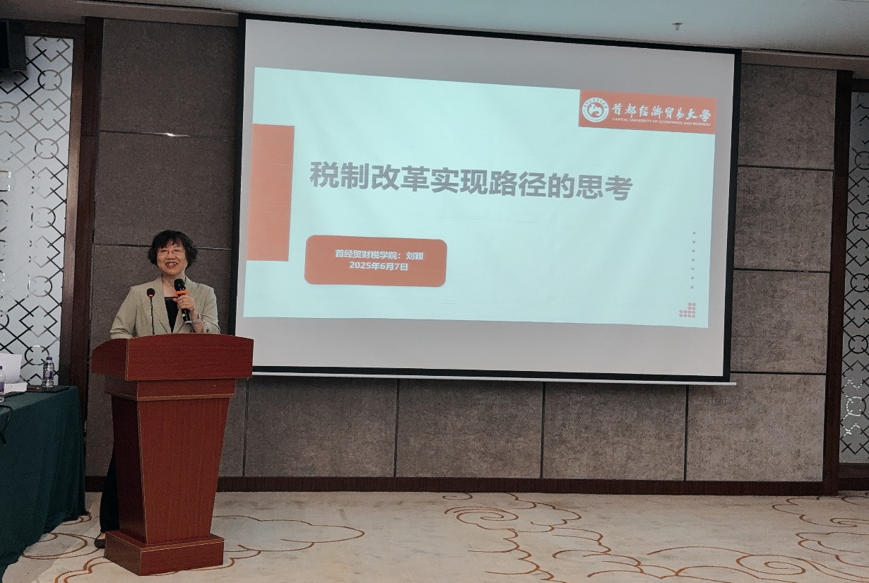 在主旨演讲环节,首都经济贸易大学刘颖教授围绕“税制改革实现路径的思考”开展主题报告,从财税体制与税制改革协同发展视角,系统剖析当前改革的关键议题与实施路径。她以分税制改革为脉络,结合党的二十届三中全会蓝图与中央经济工作会议部署,提出“效率、公平、稳健”三大改革原则,强调税制完善需与财政体制调整协同推进,结合立法案例与调研数据,以增值税立法后政策完善、消费税征收环节后移等为例,展现政策制定中的利益博弈与技术考量。