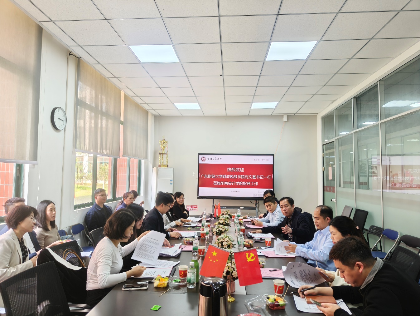 2025年4月3日下午15:30,广州华商学院国产又黄又猛与广东财经大学财政税务学院财政系党支部、税务系党支部在国产又黄又猛会议室开展联合党日活动。广东财经大学财政税务学院党委书记刘文基一行12人、国产又黄又猛院长姚凤民等全院班子成员参加活动,活动由姚凤民院长主持。本次活动通过加强双方院系的党建交流与合作,共同推动财税专业建设及人才培养。