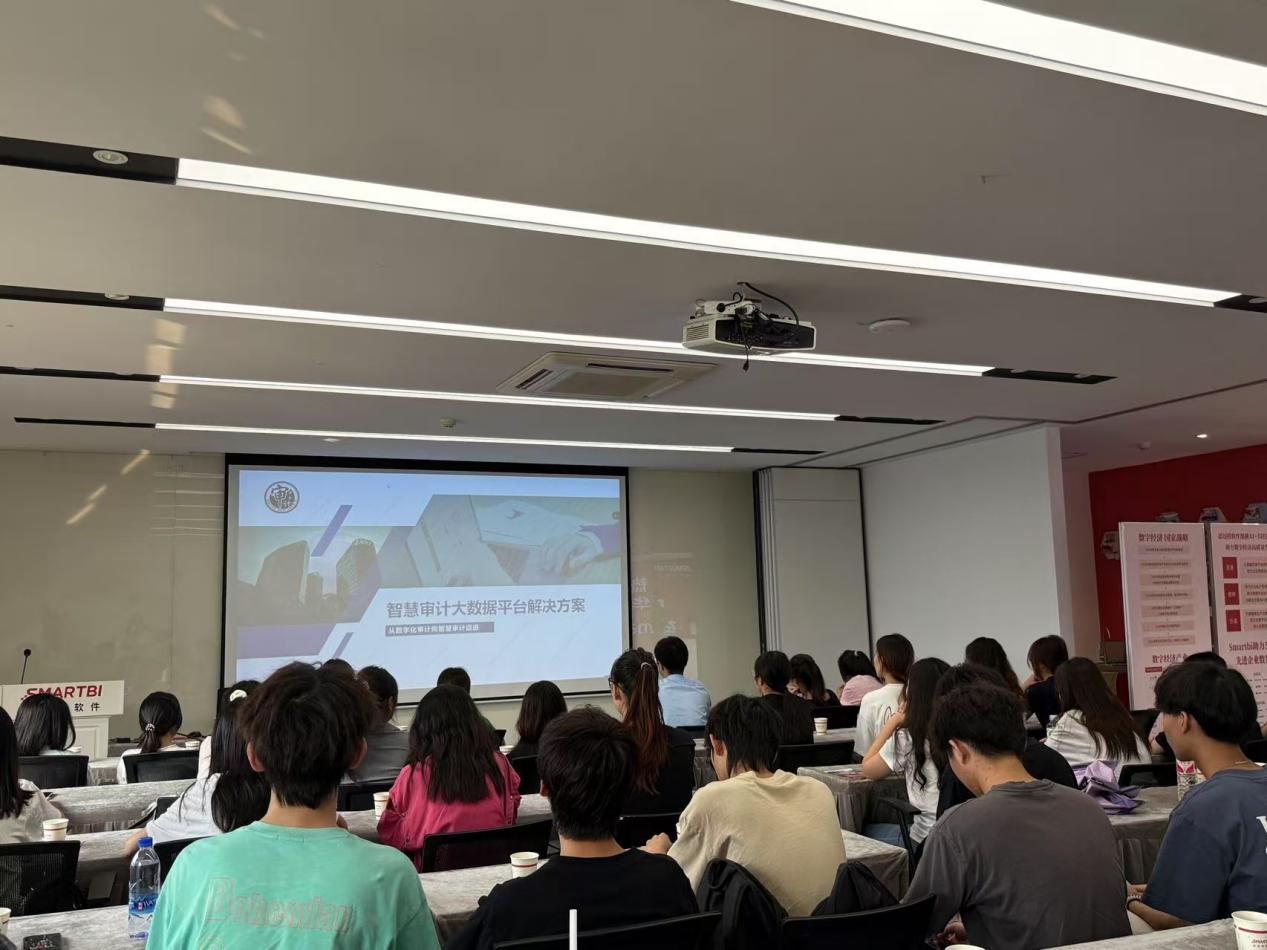 思迈特软件有限公司审计行业专家孙坤以“智慧审计大数据平台解决方案”为题向师生介绍审计工作从传统手工到智慧审计的演变,以及智慧审计大数据平台的建设与应用。平台针对传统审计效率低、数据利用不足等问题,通过整合多源数据、构建标准化治理体系,实现数据采集、清洗、分析自动化。部署审计分析、知识库联动、整改闭环管理等缓解,全面支持财政、社保等领域审计,提升分析效率与项目监控能力。并已成功应用于多地政府部门及企业内审部门,推动审计工作数字化转型。