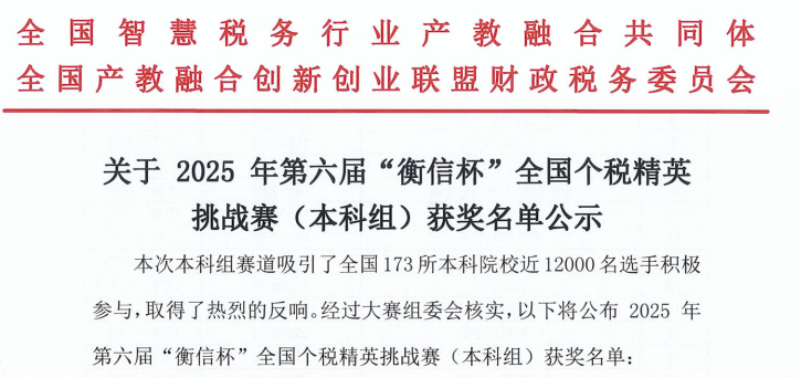 一等奖!我校在“衡信杯”全国个税师精英挑战赛中喜获佳绩