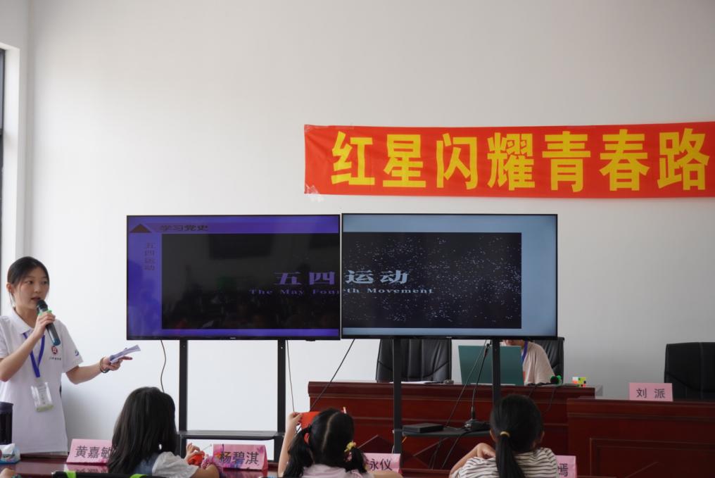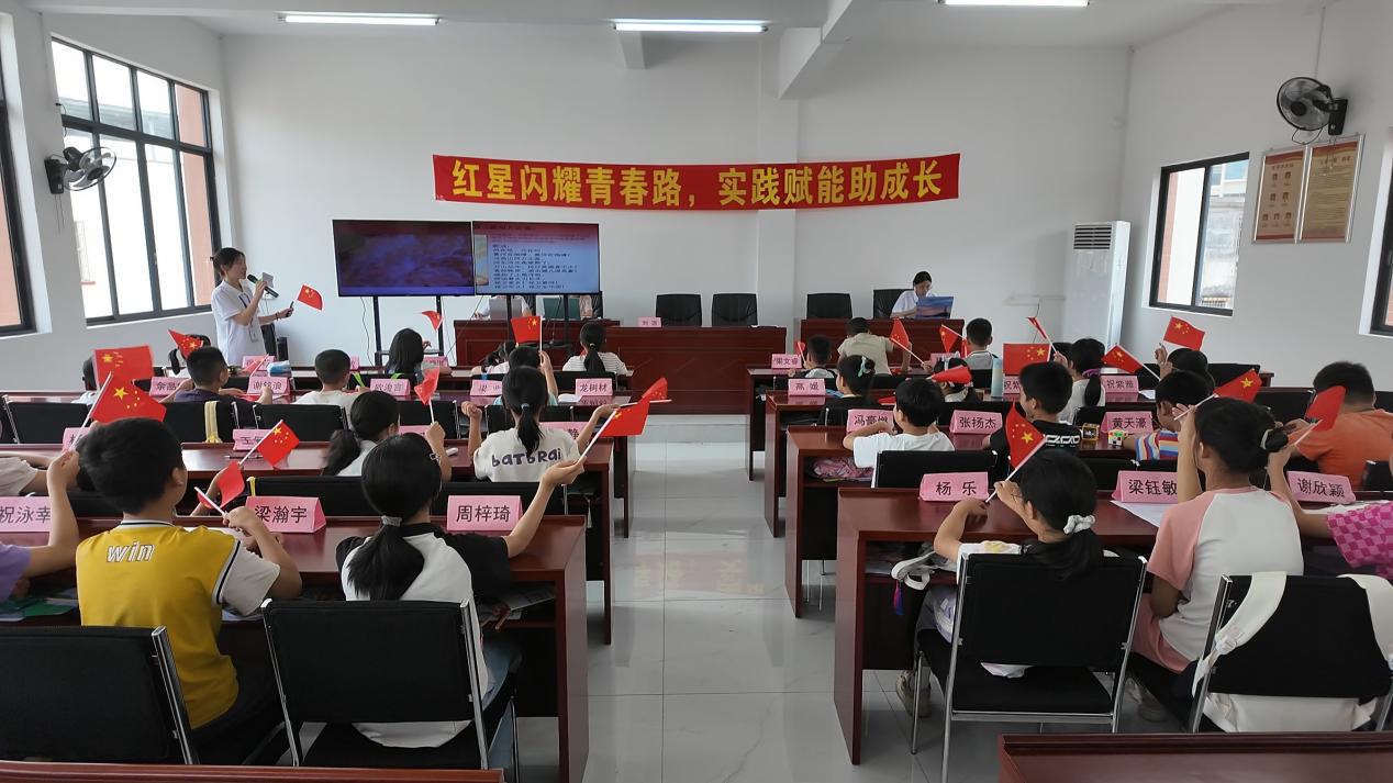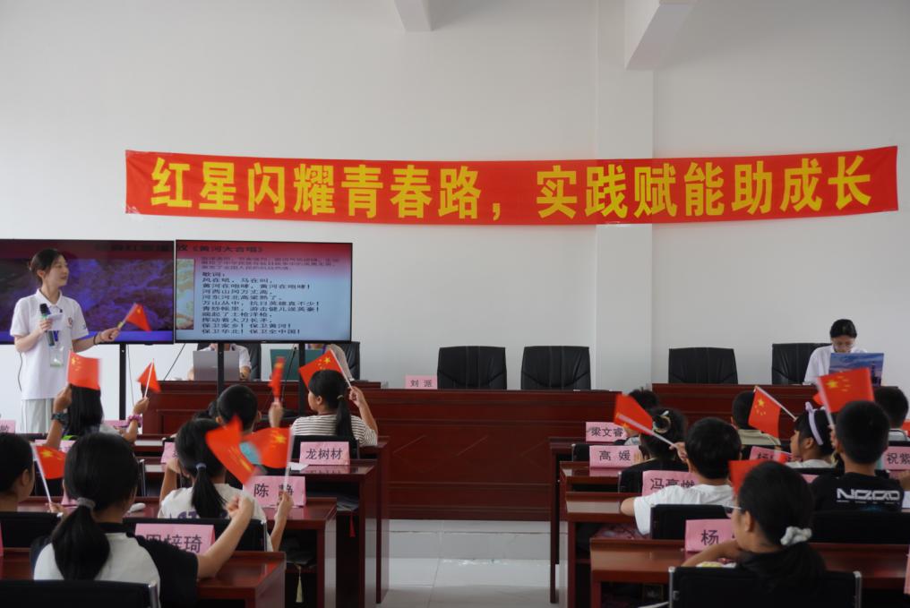 传承红色基因、赓续红色血脉,是新时代党赋予教育工作者的重要使命与责任担当。7月14日,广州华商学院国产又黄又猛“扬帆起航,筑梦成长”青年实践团于肇庆市广宁县南街街道红星社区开展了一系列红色主题教育活动。通过红歌传唱、画说党史、红色之旅、知识问答、传统剪纸,将红色文化以生动活泼的方式传递给青少年,让红色基因在欢声笑语与青春热血中薪火相传,深深浸润着少年儿童的心田,滋养着他们的精神世界。