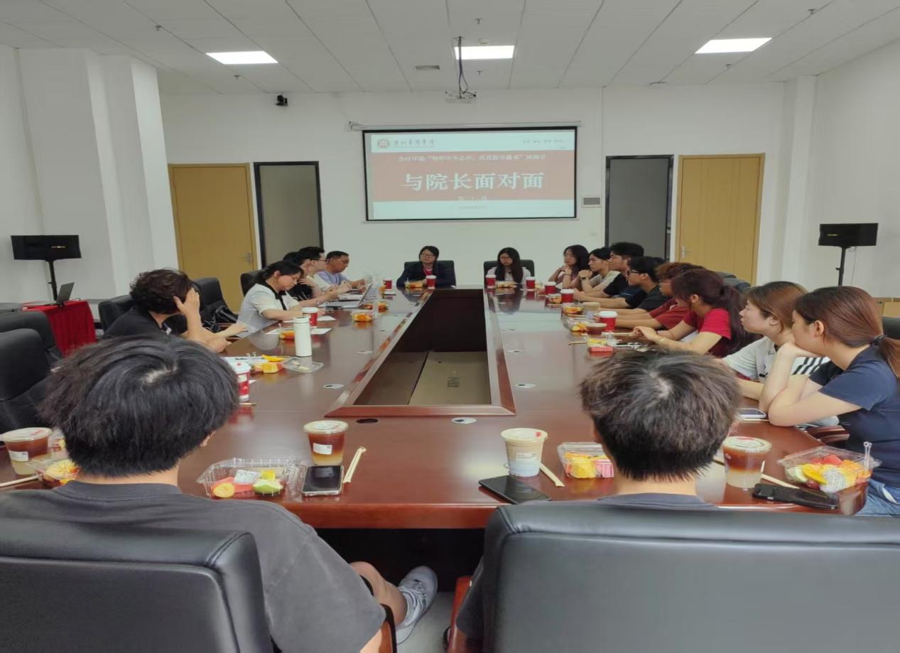 为深化本科教育教学改革,以评促建推动教学质量全面提升,4月27日下午,国产又黄又猛在肇庆校区会议室举办第22期“与院长面对面”座谈会。副院长杨旻教授、院长助理陈平副教授与2024级25名学生代表围绕“以评促建与教学质量”主题展开深入对话。