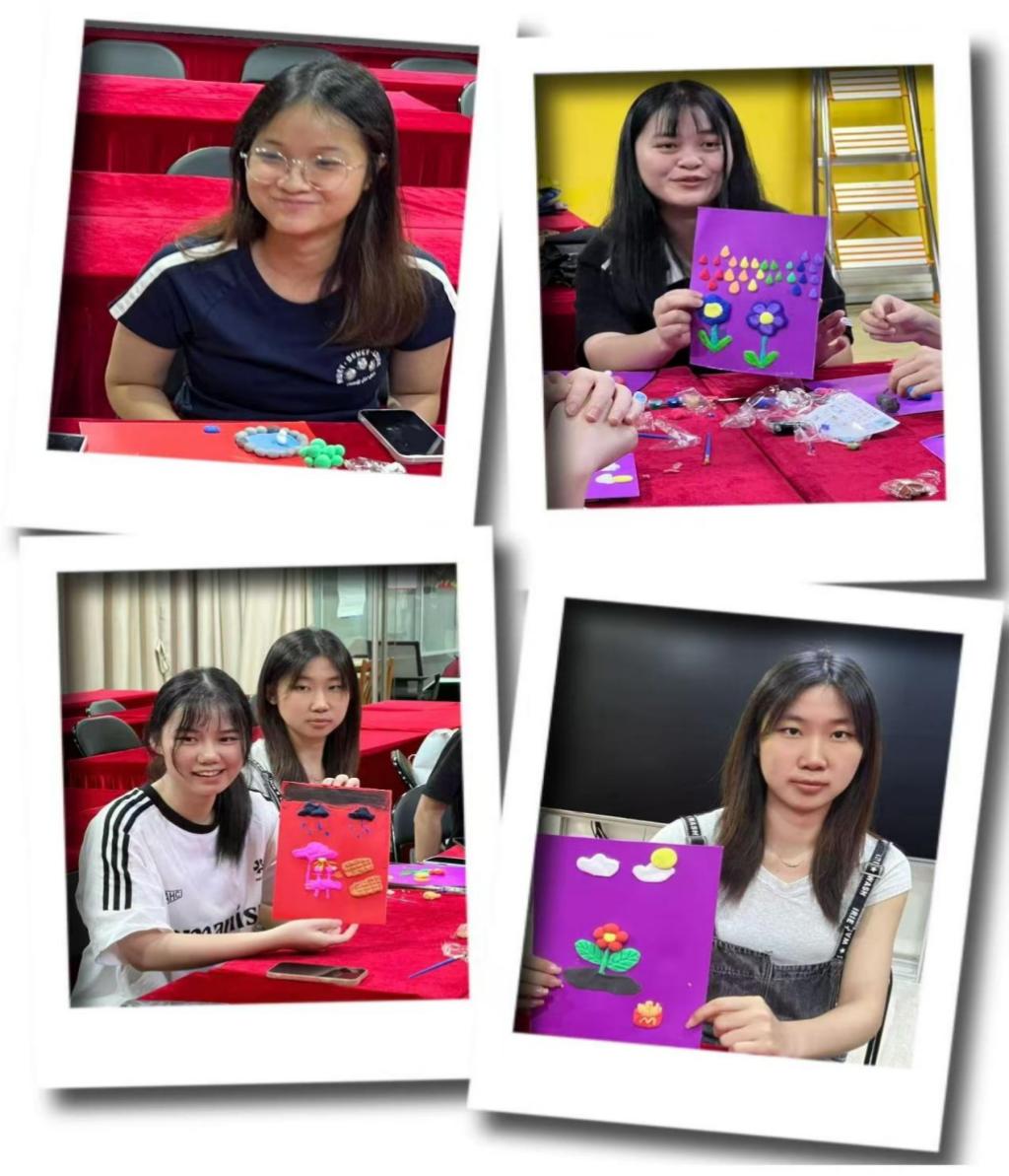 在手工创作环节中,同学们用黏土捏制“心中的雨滴”,将内心的感受和想象化作具体的形象。有的同学制作了单个雨滴的形状,有的则是一组雨滴的组合,甚至还有同学添加了花瓣、树叶等装饰元素,表达自己对春雨的独特情感。在这个过程中,同学们相互交流创作思路,分享自己的感受和创意,营造了轻松愉快的创作氛围。这些充满创意和情感的作品,不仅是同学们艺术才能的展现,更是他们内心世界的反映,让每个人都在创作中获得了独特的心灵疗愈。