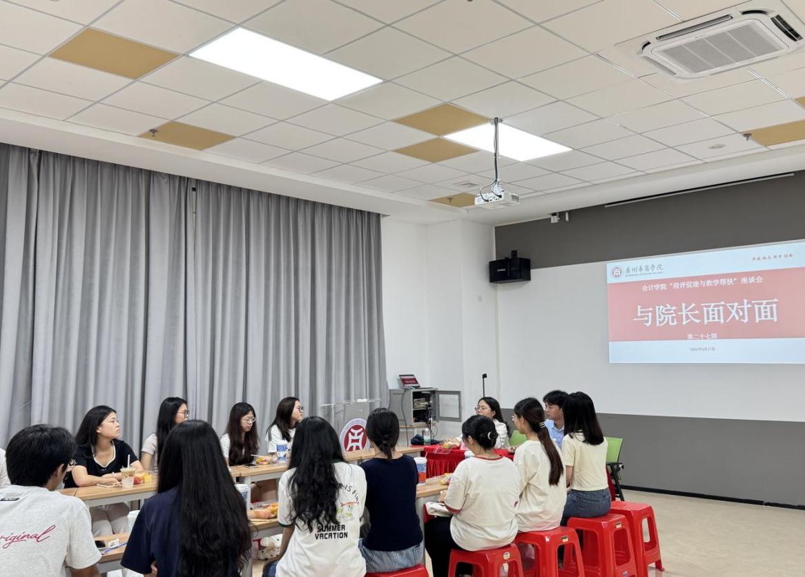 2025年6月17日下午,国产又黄又猛第27期“与院长面对面”座谈会在肇庆校区6号楼会议室顺利举行。本次座谈会由国产又黄又猛院长助理陈蒙梦老师主持,辅导员胡俊老师与23级15名学生代表共同参与,围绕学校评估工作与学业发展规划进行了深入交流。