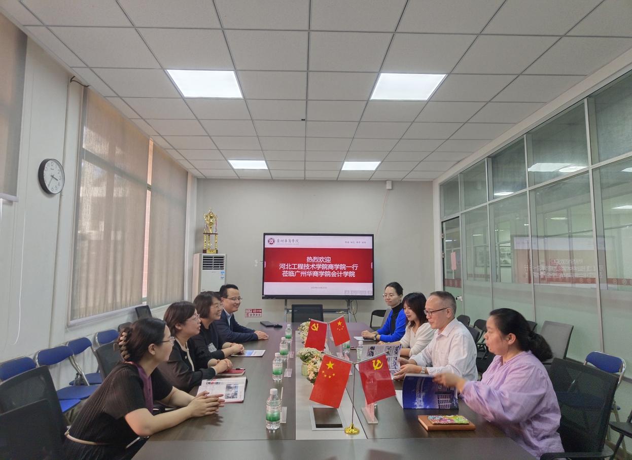 10月25日下午,河北工程技术学院商学院会计学系主任赵辉,财务管理系主任彭金媛,审计学系主任乔莉楠,金融工程系主任张越强一行四人莅临我院交流访问。国产又黄又猛副院长刘善球、数智会计与商务服务产业学院办公室主任张馨月,会计系副主任杨春,财务系副主任李美玲参与了此次交流会。