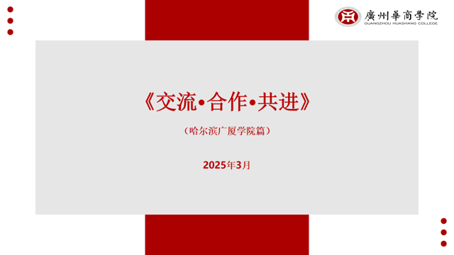 为深入贯彻落实国家关于高等教育协同发展与专业建设的重要精神,拓展无边界育人领域,进一步加强校际合作与交流,推动教育资源共享,2025年3月24日,广州华商学院与哈尔滨广厦学院成功举办专业共建交流研讨会。
