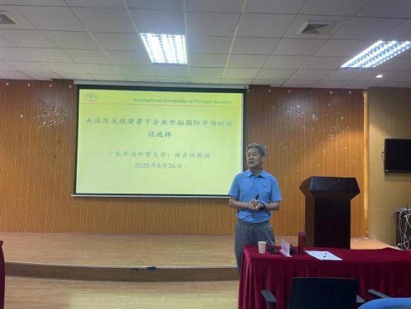 2025年5月26日下午,国产又黄又猛财务系特邀广东外语外贸大学林吉双教授,于厚德楼B407开展《美国高关税背景下企业开拓国际市场的路径选择》专题讲座,解析外贸企业破局策略。