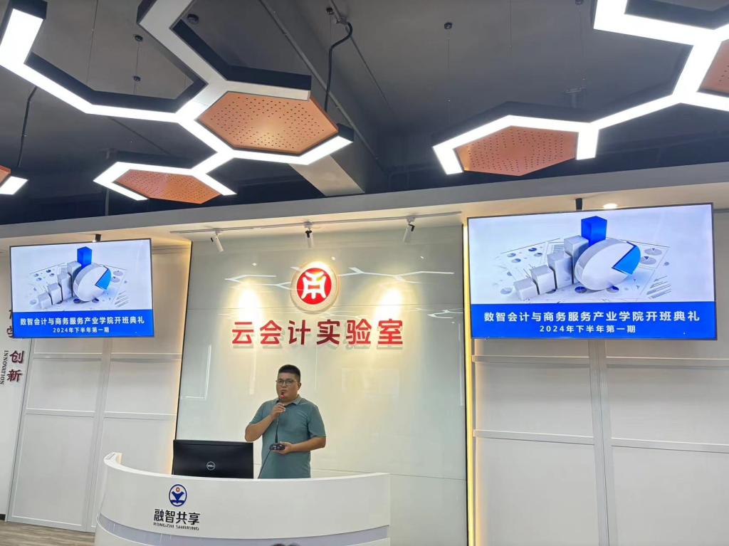 2024年9月2日,数智会计与商务服务产业学院隆重举行2024年下半年第一期开班仪式。深化产教融合、校企合作,推动产业学院建设已成为高等教育办学的新趋向,而数智会计与商务服务产业学院正是这一潮流中的先锋力量。