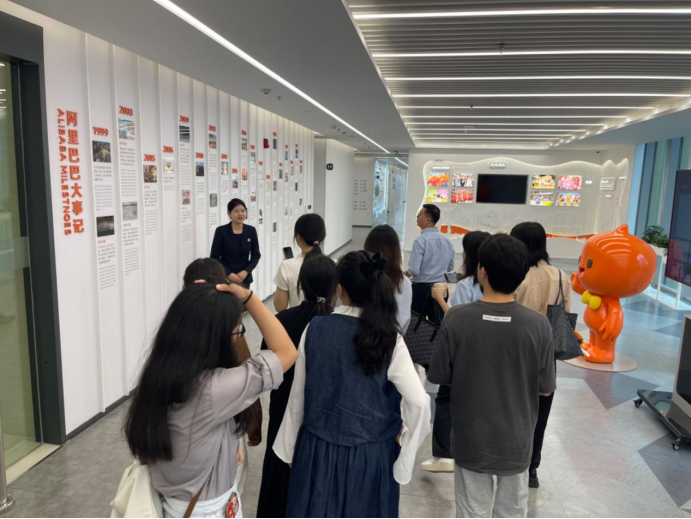 阿里巴巴的企业文化同样让同学们印象深刻。通过此次参观,我们看到了企业如何在管理中融入文化建设,从而提升员工的归属感和工作积极性。来自大三ACCA班级的刘嘉欣同学特别提到,阿里巴巴的企业文化和价值观在实际运营得到了全面贯彻,这种“客户第一、员工第二、股东第三”的理念增强了员工的凝聚力和创造力。大四的会计学专业的学生陈嘉欣则对阿里巴巴办公空间的设计和文化氛围表示赞赏,她感受到阿里巴巴对于创新的无尽追求,以及这种文化对企业长远发展的支撑作用。
